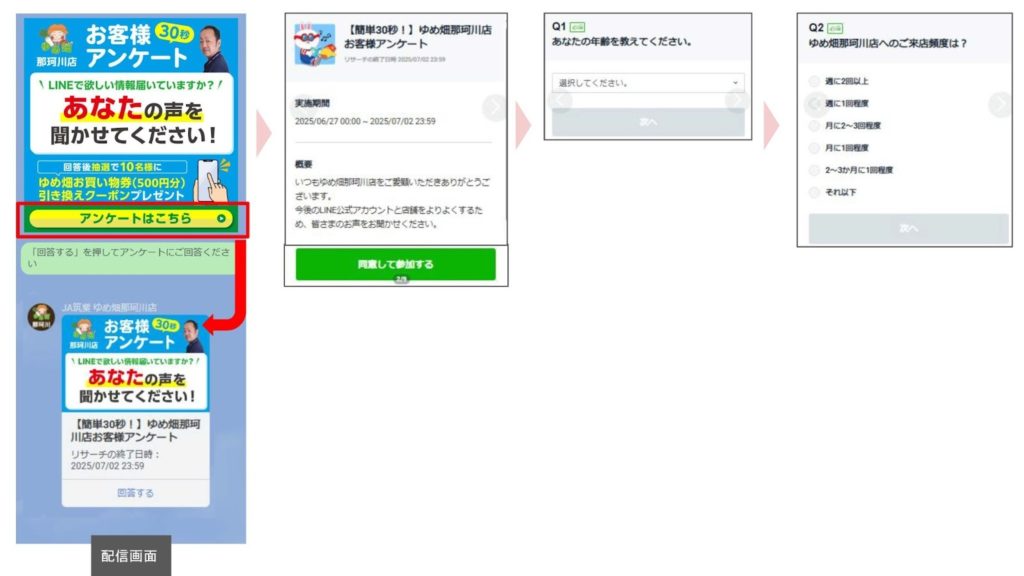 半年に1回、LINE上でアンケートを配信し、以下の流れで実施しています。