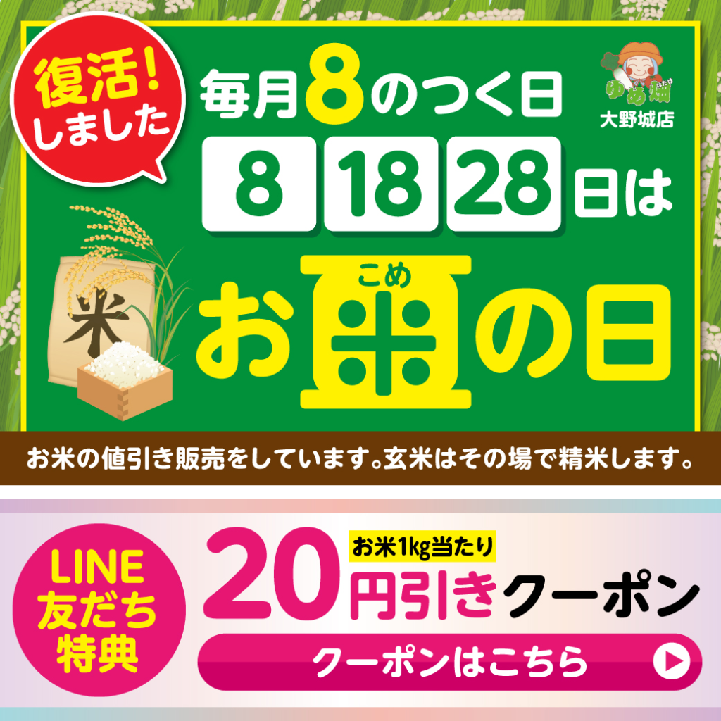 JAならではの強みである「精米販売」を活かし、「お米はゆめ畑で買おう」と思ってもらうきっかけづくりとして、お米の日の前日告知や定期的なクーポン配信を実施しています。