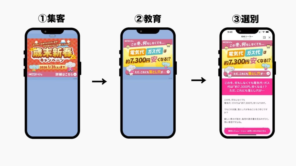 この流れにより「実際にシミュレーションを行った23名」を特定することに成功しました。この23名は、単なる懸賞目当てではなく、自身の光熱費に本気で悩んでいる見込みの高い層です。