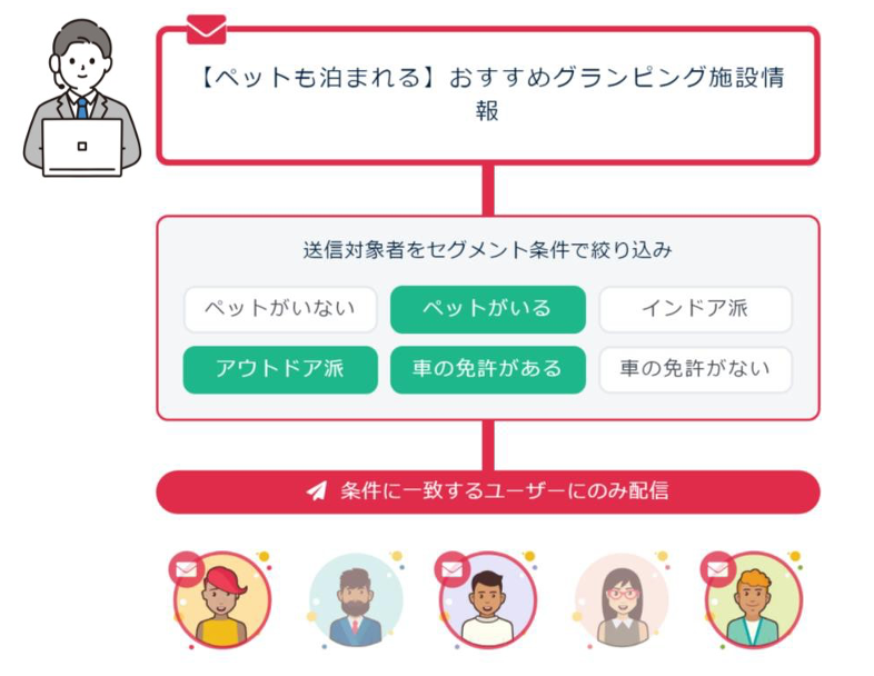 2,セグメント配信で情報を最適化し(分類)