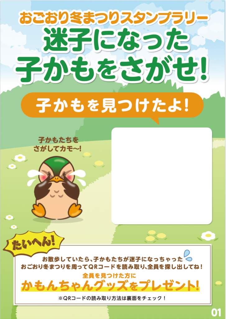 冬まつりでは、会場内にQRコードを掲示し、LINE公式アカウントへの友だち追加を促進。会場を周遊しながらLINE上でスタンプを集め、すべて集めると商工会ブースでガチャガチャに挑戦できる仕組みを導入しました。オリジナルキャラクター「かもんちゃん」の缶バッジやクリアファイル、ハンカチなどのノベルティを用意し、楽しみながら友だち追加が進む設計としました。