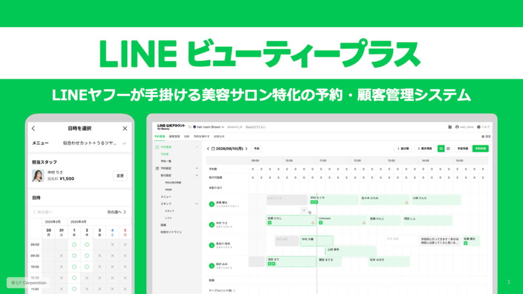 2026年6月開始の美容室向けLINE予約システム「LINEビューティープラス」を解説。現在先行予約受付中。予約管理・顧客管理・カルテ共有・自動配信の機能や導入メリット、ホットペッパーとの違い、料金まで、美容室、サロンの担当者向けにわかりやすく紹介します。